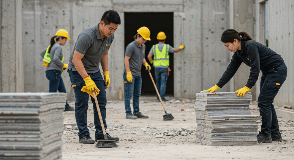 Professionals clean efficiently and safely, preventing delays and protecting the property’s surfaces.