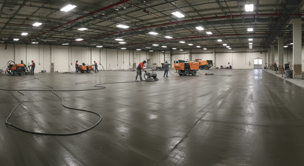 Concrete floor grinding smooths and polishes floors, enhancing durability, safety, and appearance in commercial properties.