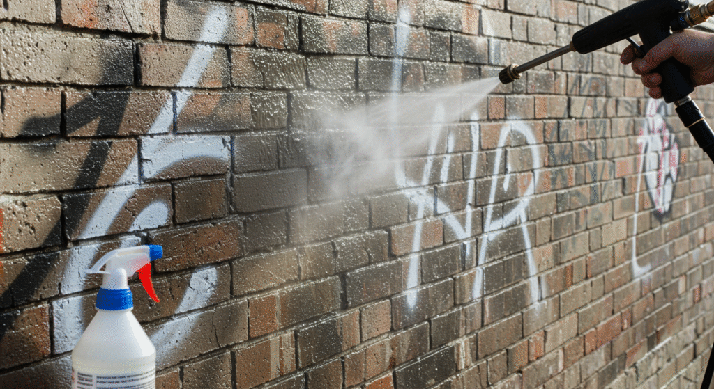 - Effective Removal Techniques: Experts use the right tools and pressure washing methods to remove graffiti without damaging surfaces like brick, concrete, or glass.